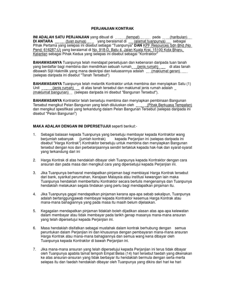 Contoh Perjanjian Kontrak Bina Rumah Pdf